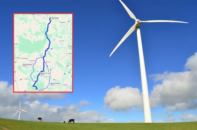 German energy company RWE is planning to construct a large wind farm project in Queensland's Cattle Creek - but listed the wrong postcode in its public referral page. (Jonny Clow / Google Maps)